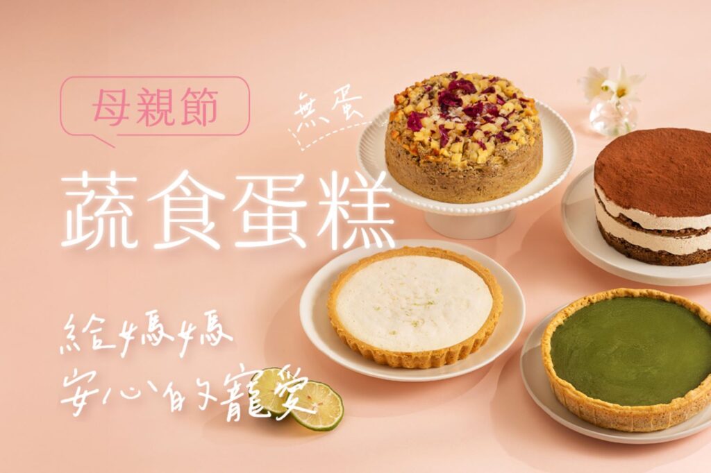 里仁嚴選少添加、安心來源的原料,精心打造無蛋、減油減糖的母親節蔬食旦糕。(里仁公司提供)。