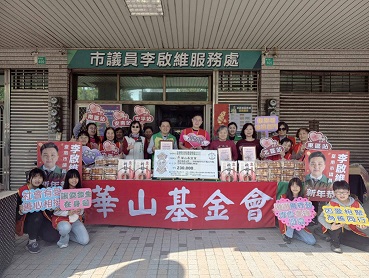 【民進日報記者凃政宏台南報導】歲末寒冬!市議員李啟維邀各界善心人士及熱心企業,合捐逾5千公斤米麵及23萬元給華山基金會台南A區愛心天使站六站,一起來關懷長者,10日上午在安平區李啟維服務處舉行捐贈儀式,社會局陳雅芬主任秘書也到場見證,並由華山基金會台南A區縣站長黃中衛率縣社工杜怡玟、安平站長李濰禎及南區站長黃詩涵出席代表受贈。