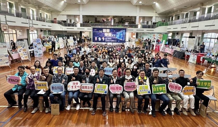 臺南5G智慧學習成果展合影。(記者黃伃綵攝)