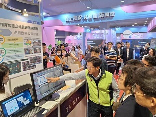本次南市府主題館共有8個局處參展,經發局展出「SBIR創新研發成果」,計畫補助領域涵蓋低碳節能、數位轉型、金屬機械、民生化工、運動與健康、創新服務,執行績優成果包含低碳製程的塑膠色母粒、回收再利用研磨絨盤、餅皮自動產線系統、新能源車變速箱、無人化拉釘設備、生質碳黑母粒、上肢復健系統、無盲區運動光學眼鏡、產品減碳技術及服務業數位化創新商業模式等,扶植中小企業導入AI與智慧技術,有效提升產業創新研發與轉型升級能力;交通局推出「AI影像辨識智慧交通管理系統—路廊智慧動態號誌」,運用AI與大數據技術即時調整號誌,提升通行效率與行車安全,打造更智慧的交通環境;環保局推出「IOT空品感測物聯網」及「聲音照相科技執法」,以物聯網與AI監測空氣與噪音,提升環境管理效能,推動智慧永續城市發展。