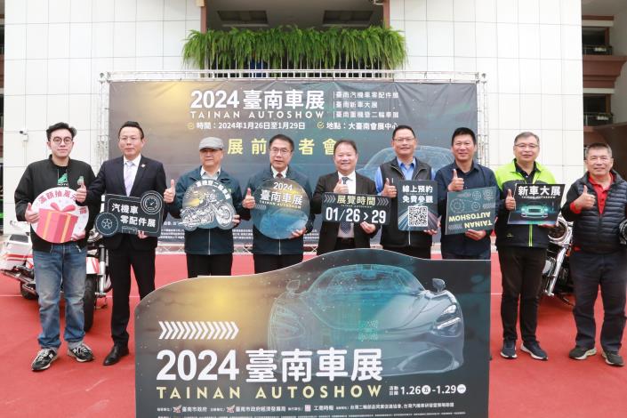 【民進日報記者凃政宏台南報導】汽機車零配件產業為台南優勢產業之一,台南市府經濟發展局將於2024年1月26日至1月29日在大台南會展中心舉行2024台南車展(Tainan Autoshow),今(17)日舉辦展前記者會,市長黃偉哲也到場共襄盛舉,歡迎大家相揪來參與大台南汽機車界的年度盛會。