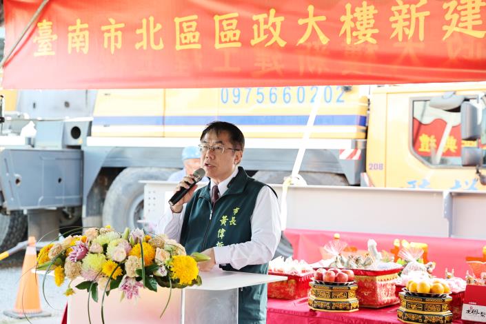 「臺南市北區區政大樓新建工程」經費為耗資3億4,456萬709元,未來新落成的北區區政大樓為地下1層、地上4層之聯合辦公大樓,結合北區區公所、府北戶政事務所辦公空間,並附設社會局托嬰中心、1處多功能空間、電動機車換電站及公共停車場,同時規劃取得銀級綠建築及合格級智慧建築標章,工程目前整體進度已經達百分之六十,施工進度超前2%,預計在明年(114年)8月可以如期如質完工。