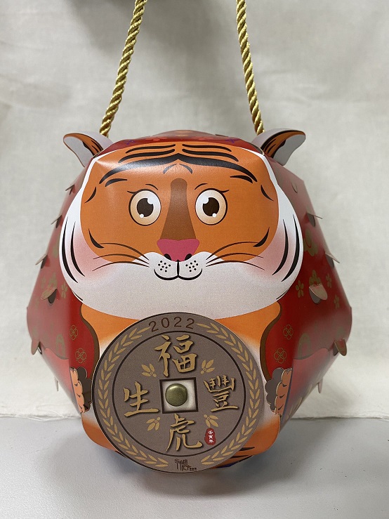 南臺科大神農街團隊許博欽助理所設計研發的虎你福氣小提燈。(記者黃伃綵攝)
