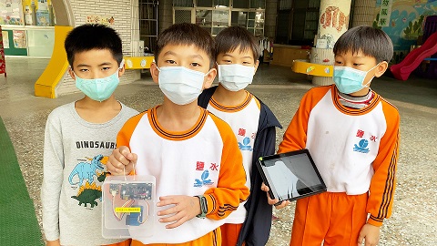 臺南市鹽水國小學生做空氣盒子。(記者黃伃綵攝)