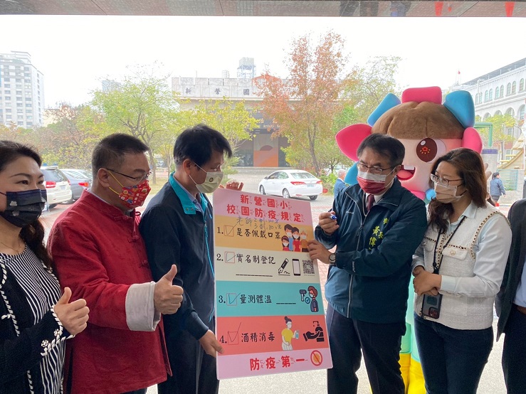 新營國小賴昭貴校長表示,該校教職員工第2劑疫苗施打率100%,且第3劑施打率已達80%以上。配合市府防疫工作及確保學童學習環境安全,已於開學前完成教室內外的消毒作業,並盤點增補各項防疫物資,開學後校方會嚴格執行門禁管制,進行入校實聯制登錄、量體溫、噴酒精消毒、在校內行動全程配戴口罩等嚴密防疫措施,每日安排人員分流引導學生入校及完成量體溫,午餐設置隔板及避免交談,加強宣導學生落實個人衛生管理與建立良好生活習慣,提供全校師生安全健康的學習環境。