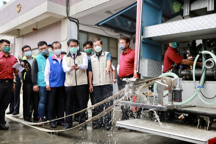 黃偉哲讚消防水帶電動清洗收捲機創意實用減輕救災後的負擔。