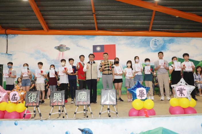 今天是復興國小第27屆畢業典禮,該校以「文藝復興-創造個人品牌與價值」為願景,也是台南巿天文第一品牌,培育孩子為未來各行各業的領航員,並以「動靜並重」、「文藝兼備」、「知能與身體素質」均衝發展為理念,兼融科學、藝術、文學、技藝,發展立足本土,接軌國際,放眼宇宙的多元觀,開展孩子的潛在亮點。