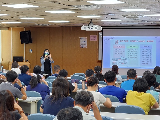 2場次說明會由鹽水區公所政風室曾俊憲主任、新化區公所政風室許華欣主任分別擔任講座,針對本局所屬機關學校新進人員、初次申報財產或有興趣瞭解相關議題之同仁,以實例相伴講解有關「公務員廉政倫理規範」、「公職人員利益衝突迴避法」及「公職人員財產申報法」等規定。